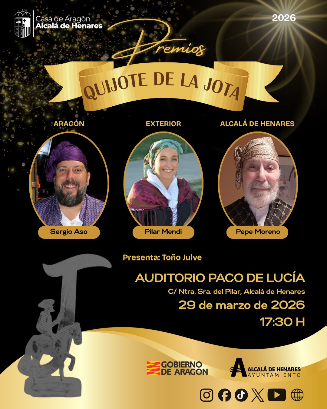 El Premio Quijote de la Jota es una de las distinciones más especiales que, desde el año 2010, concede la Casa de Aragón de Alcalá de Henares. Su objetivo es reconocer la labor, el talento y la dedicación de aquellas personas o entidades que han contribuido de manera destacada a la difusión, conservación y engrandecimiento de la jota aragonesa.